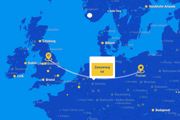 Loty na trasie Poznań Ławica (POZ) - Leeds Bradford (LBA) wykonywane będą ppd 4 grudnia 2021 roku. Ta regularna trasa obsługiwana będzie dwa razy w tygodniu - we wtorki i soboty. Bilety lotnicze kosztują od 89 zł w jedną stronę. Na skróty