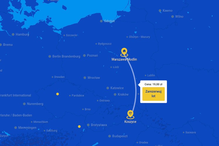 Regularne loty na trasie Warszawa Modlin (WMI) - Koszyce (KSC) wykonywane będą od 30 marca 2021 roku. Trasa będzie obsługiwana trzy razy w tygodniu.