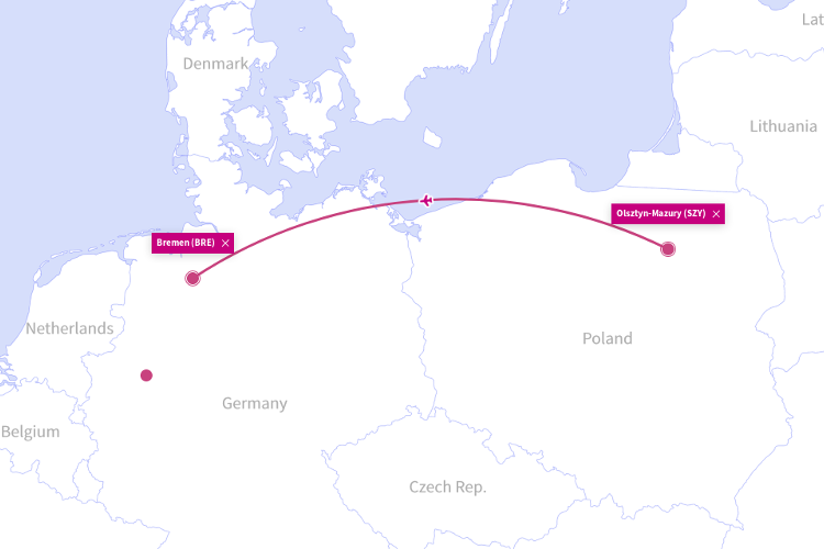 Loty na trasie Olsztyn Mazury (SZY) - Brema (BRE) rozpoczną się 27 października 2019 roku. Trasa będzie obsługiwana 2 razy w tygodniu - w środy oraz niedziele. Bilety lotnicze są już dostępne od 39 zł w jedną stronę. Będzie to trzecia trasa linii Wizz Air z mazurskiego lotniska. Przewoźnik obsługuje już bowiem dwie trasy z Mazur: do Londynu w Wielkiej Brytanii oraz do Dortmundu w Niemczech. Na skróty